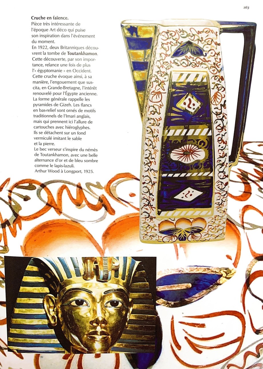 Ci-dessous, un autre exemple d'Imari anglais de l'époque art déco (page 163): cruche Toutankhamon , Arthur Wood à Longport, 1925 . Coll.particulière